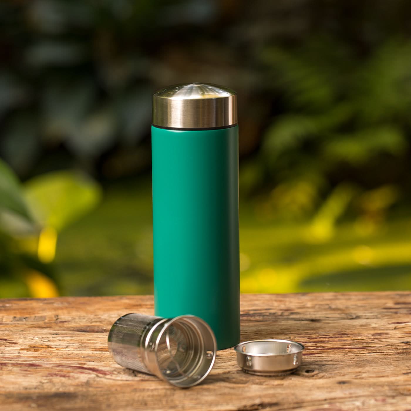 Neem je favoriete thee of infusie overal mee naartoe met deze stijlvolle, dubbelwandige RVS theefles in bosgroen. De fles houdt dranken tot 5 uur warm en 7 uur koud. Lekvrij, ergonomisch en ideaal voor onderweg, op werk of tijdens een wandeling.