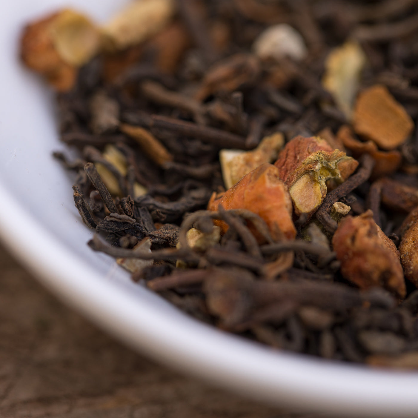 Dankzij de pu erh heeft deze blend een stevige basis met een milde aardse toon. De noten en specerijen geven diepte en warmte.