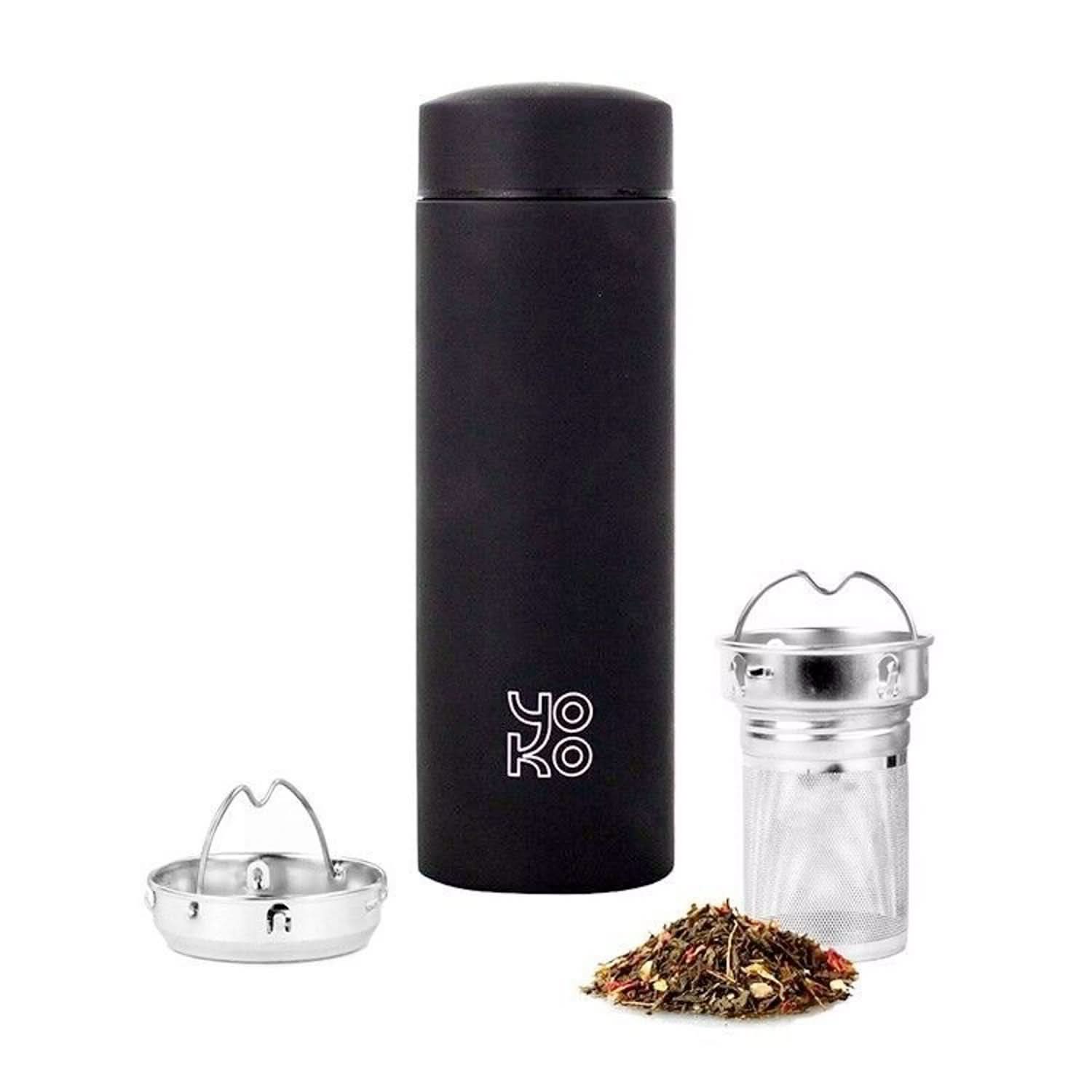 Deze stijlvolle, zwarte isoleer-theefles van 350 ml houdt je thee, infusie of detoxdrank tot wel 5 uur warm en 7 uur koud. Lekvrij en ergonomisch, ideaal om mee te nemen naar werk, sport of onderweg.